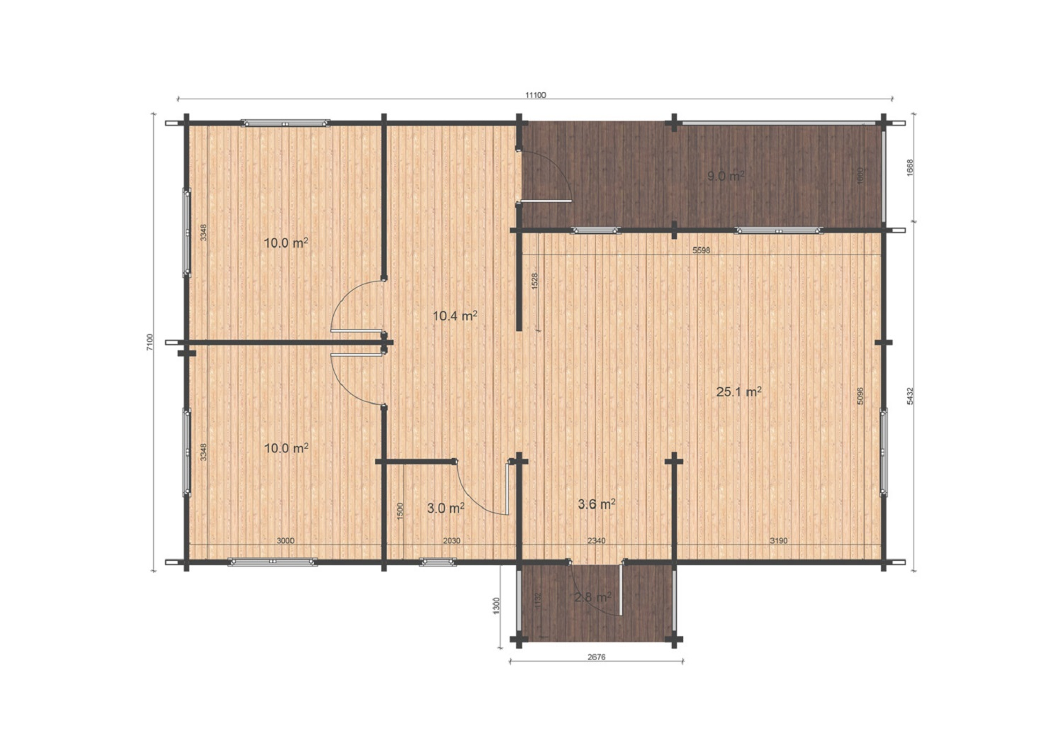 Dimensão externa (largura x comprimento) 7,1 m x 11,1 m
