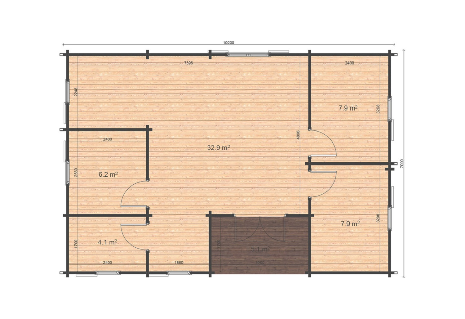 Summerhouse Scarlett 7 x 10,2m, 68 mm: